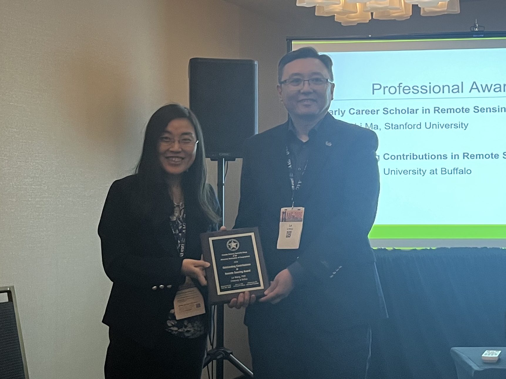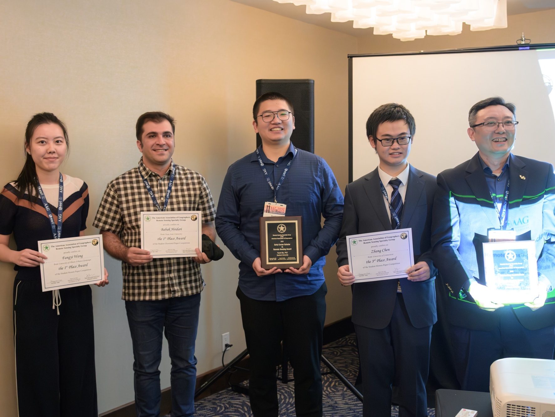 RSSG Outstanding Contribution in Remote Sensing Award winner, Dr. Le Wang, on March 20, 2026.RSSG Student Honors Paper Competition winners at AAG Award Reception on March 20, 2026.